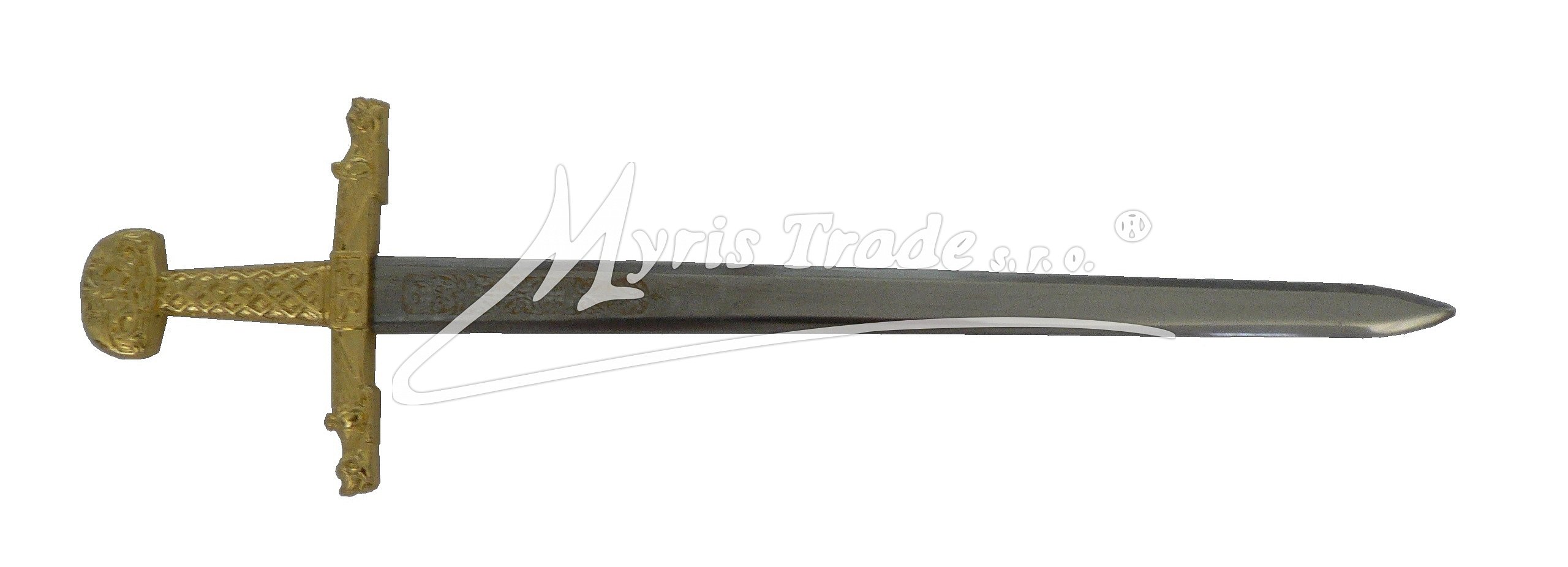 luxusně provedený otvírač na dopisy v podobě historické zbraně s čepelí z nerezové oceli, kopie meče Karla Velikého