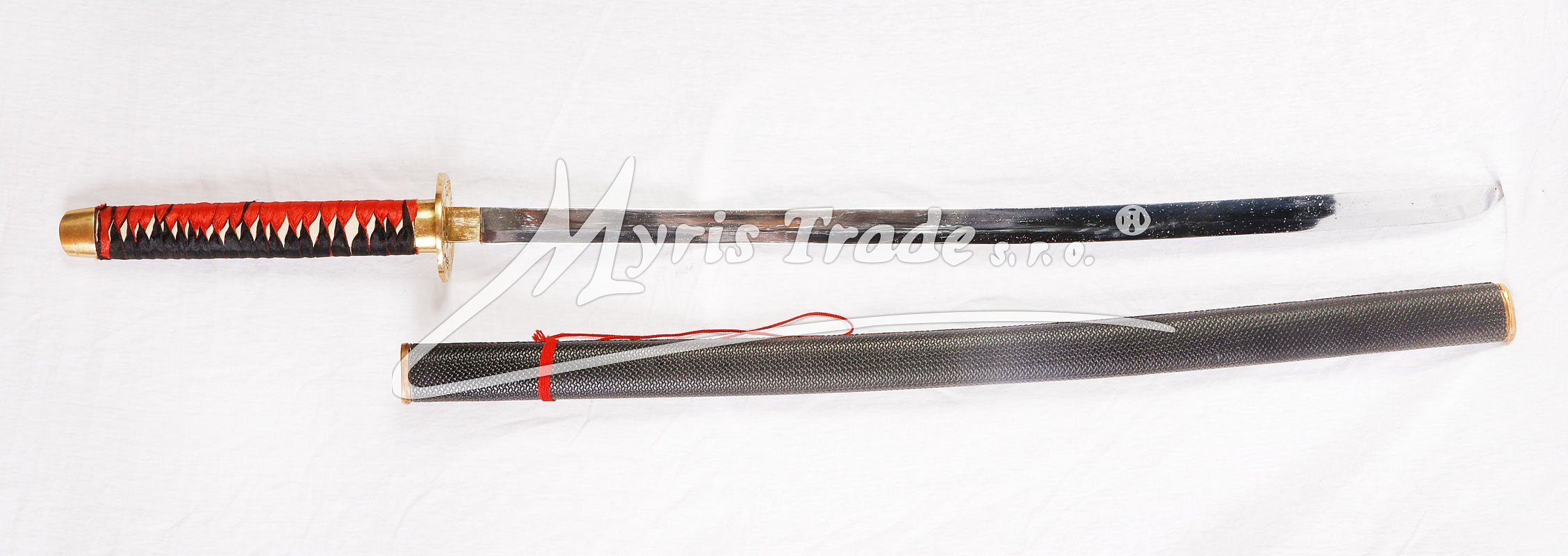 samostatná katana s kovovou pochvou potaženou imitací kůže v černé barvě vyrobená z kvalitní oceli - dovoz Indie