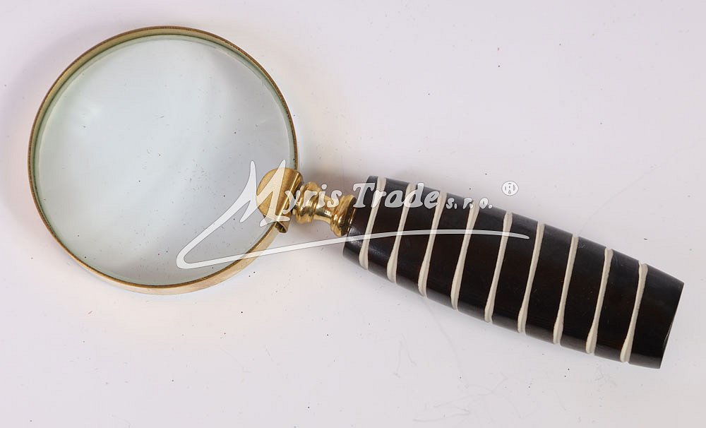 mosazná lupa s černou rukojetí s bílou linkou ve starožitném stylu, s vysoce funkční čočkou s maximálním zvětšením