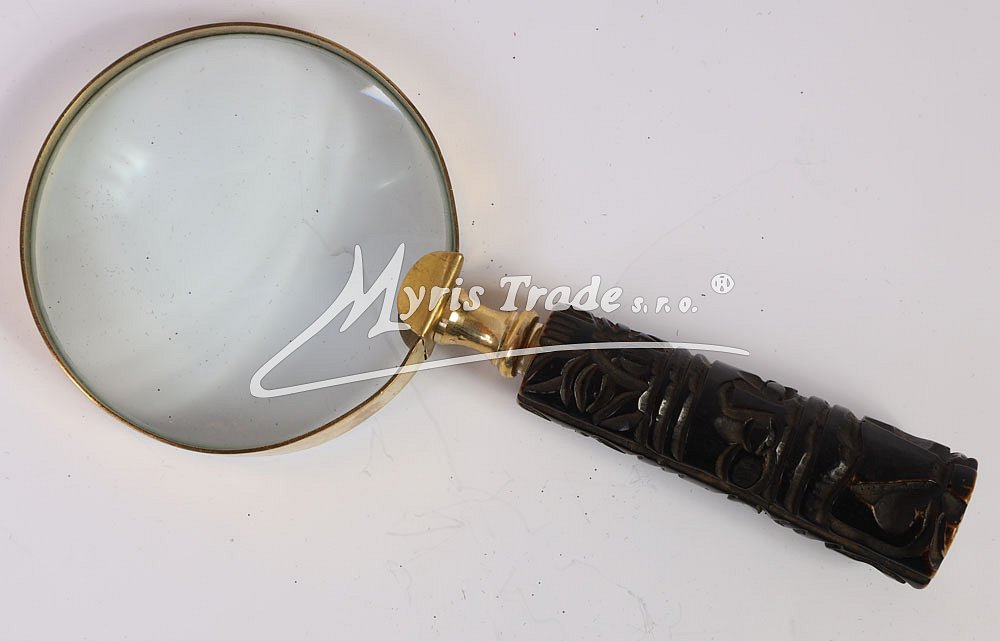mosazná lupa s rukojetí z imitace vyřezávané kosti ve starožitném stylu, s vysoce funkční čočkou s maximálním zvětšením