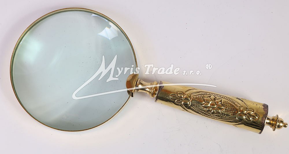 mosazná lupa se zdobenou mosaznou rukojetí ve starožitném stylu, s vysoce funkční čočkou s maximálním zvětšením
