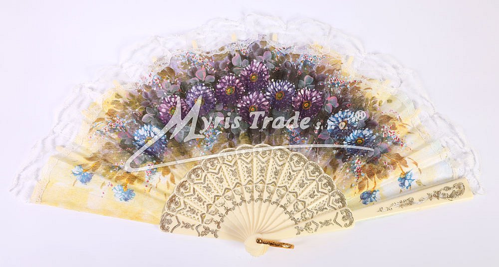 plastový vějíř s květinovým motivem a bílou krajkou lze použít nejen jako krásnou dekoraci, ale je i plně funkční