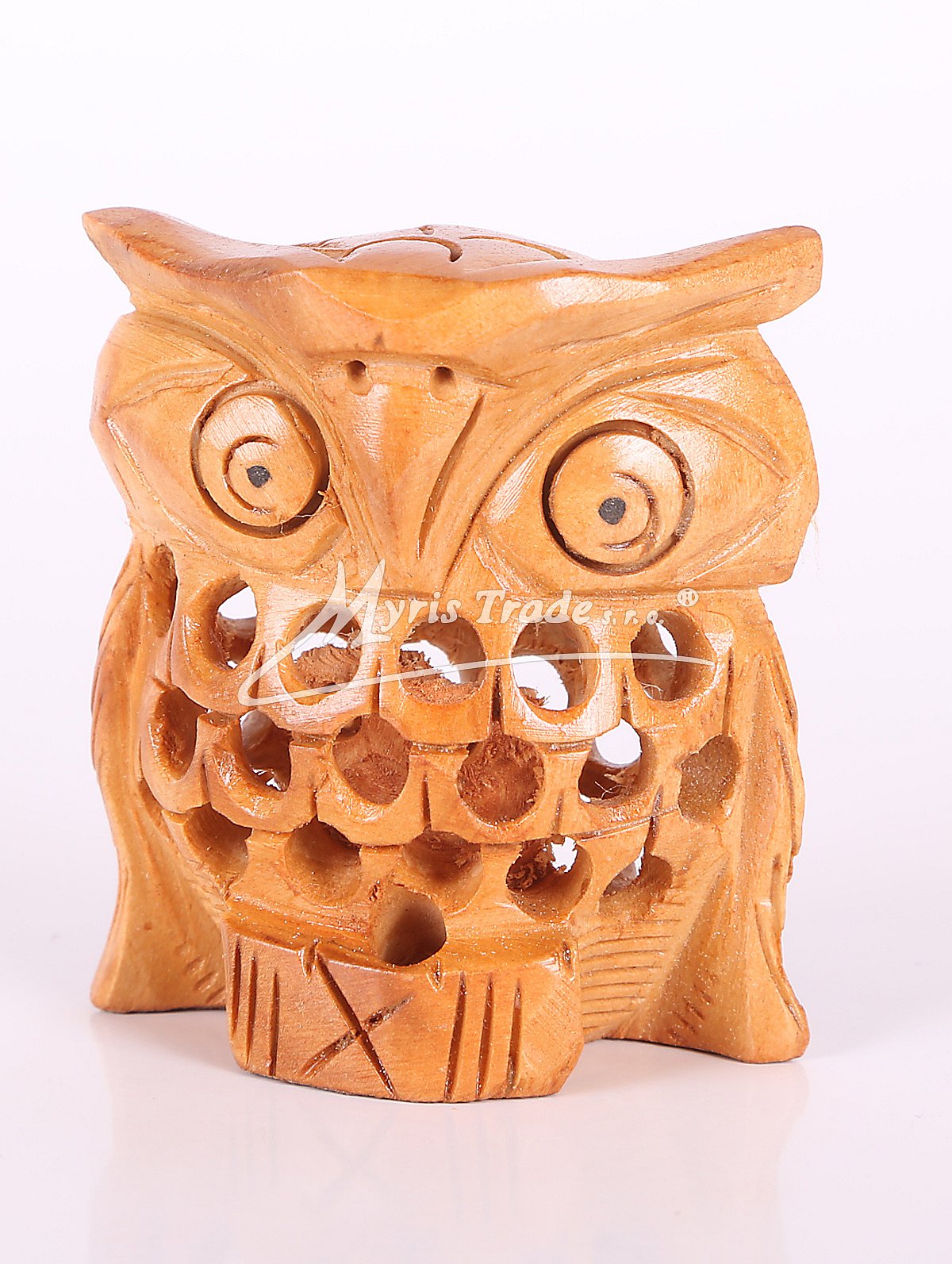 sova dřevěná, vyřezávaná, dutá, světlé dřevo