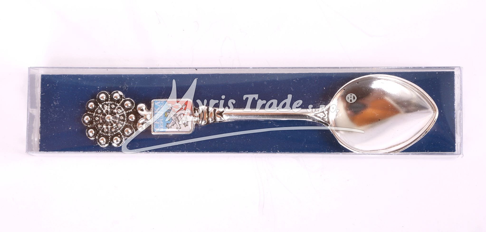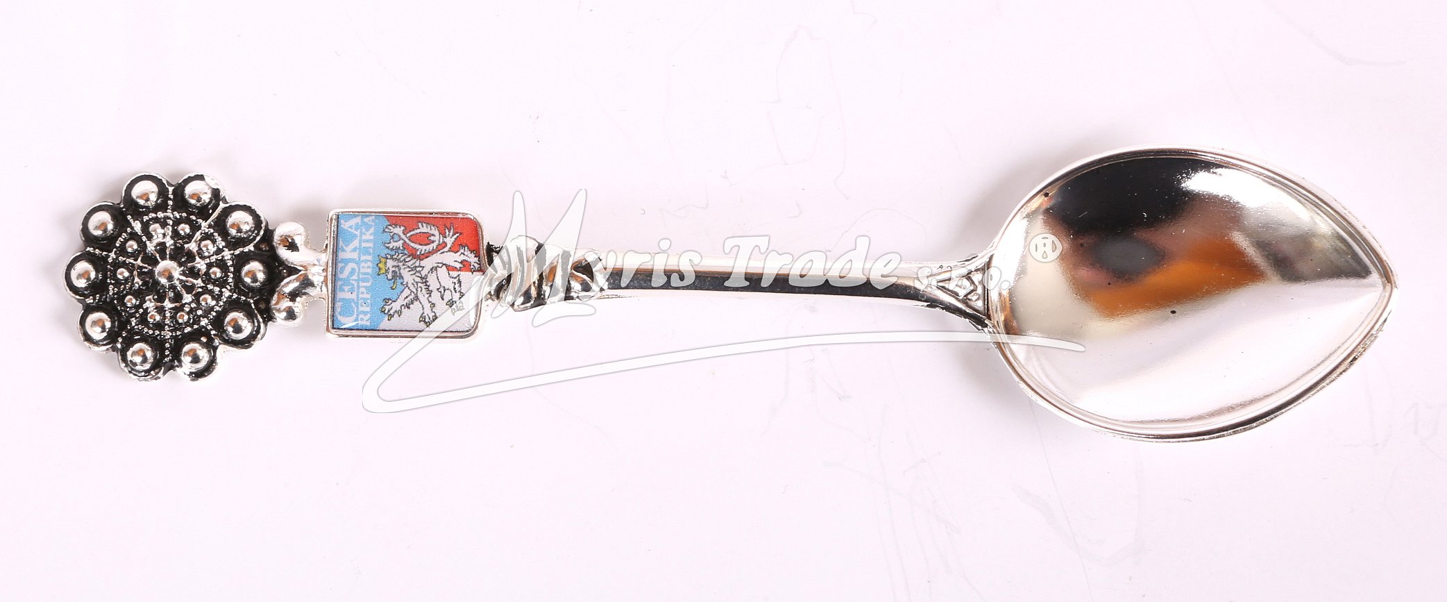 ozdobná postříbřená čajová lžička s motivem České republiky
