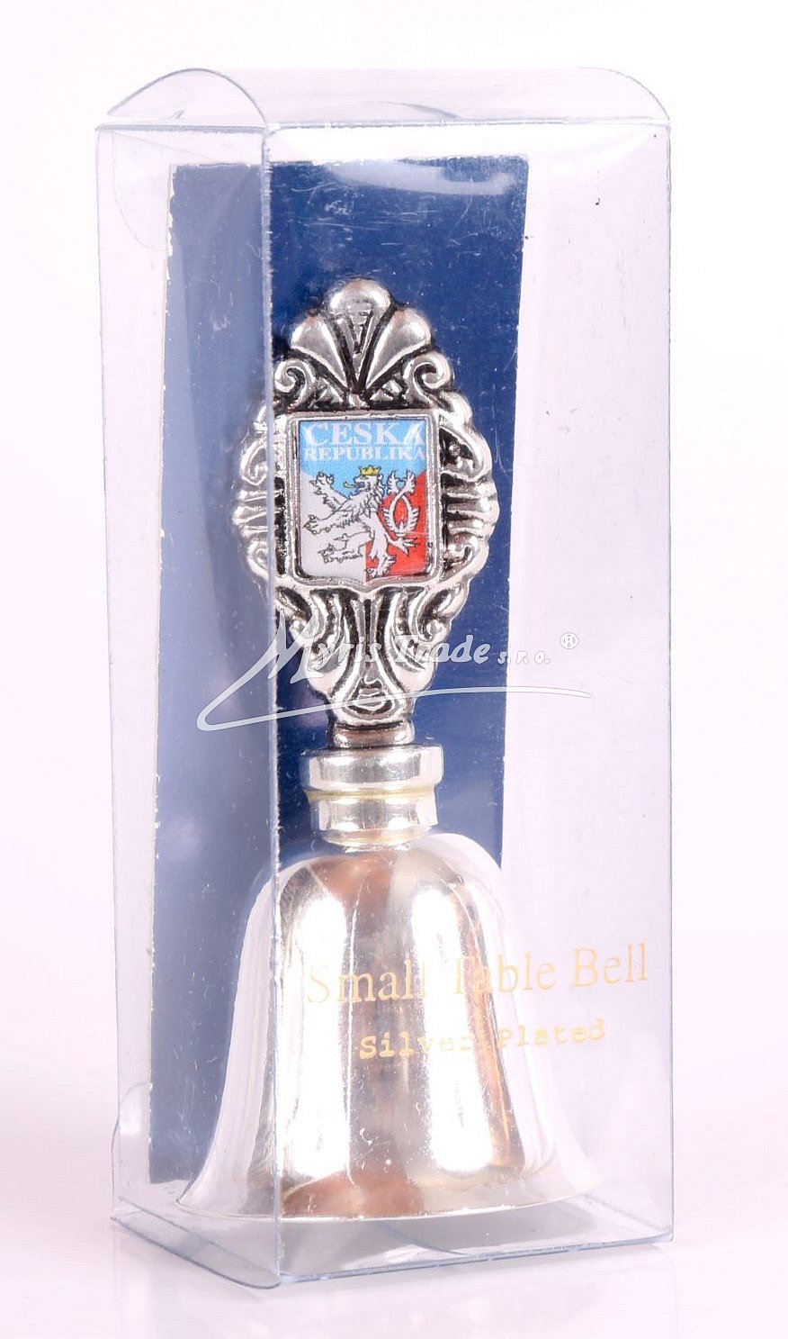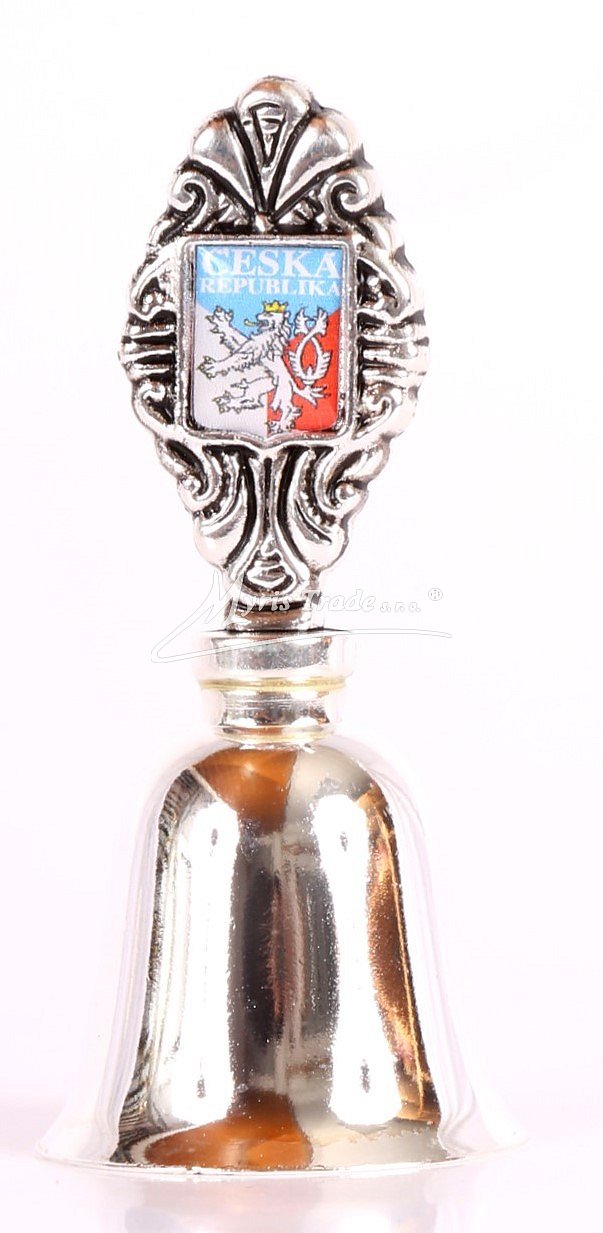 hladký zvoneček s motivem České republiky - postříbřený, v průhledné dekorativní krabičce z plastu