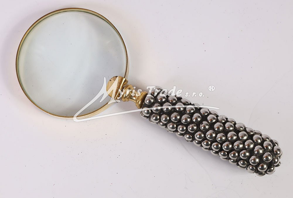 mosazná lupa s rukojetí zdobenou kovovými kuličkami ve starožitném stylu, s vysoce funkční čočkou s maximálním zvětšením