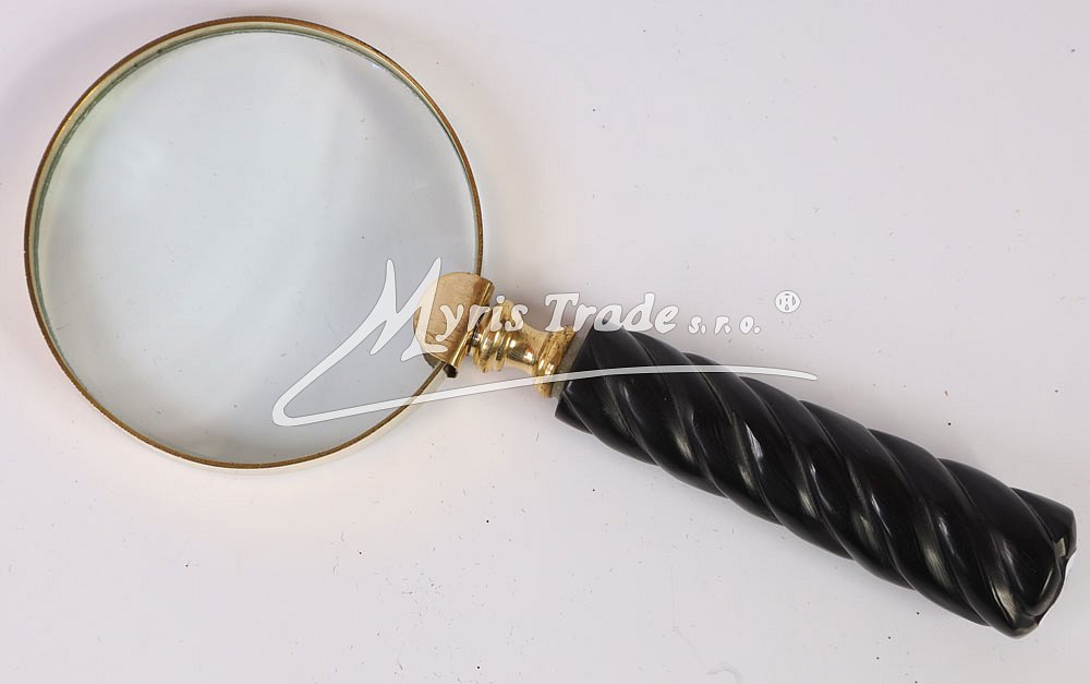 mosazná lupa s černou rukojetí ve starožitném stylu, s vysoce funkční čočkou s maximálním zvětšením