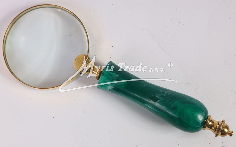 mosazná lupa se zelenou rukojetí s mosaznou ozdobou ve starožitném stylu, s vysoce funkční čočkou s maximálním zvětšením