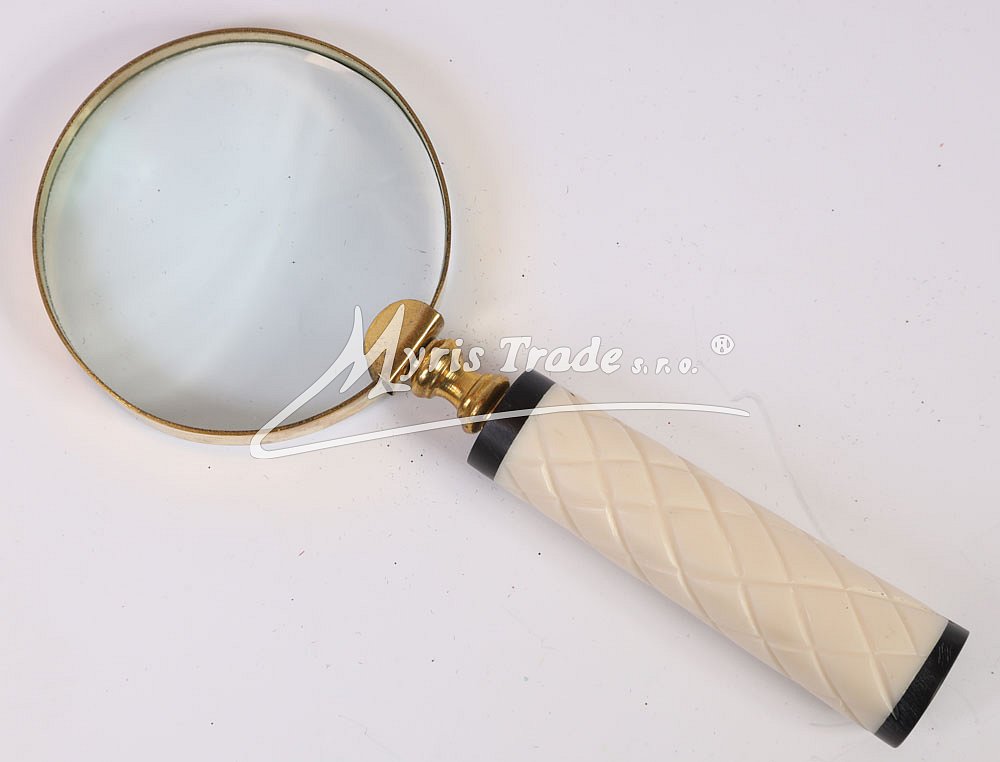 mosazná lupa s bílou rukojetí ve starožitném stylu, s vysoce funkční čočkou s maximálním zvětšením