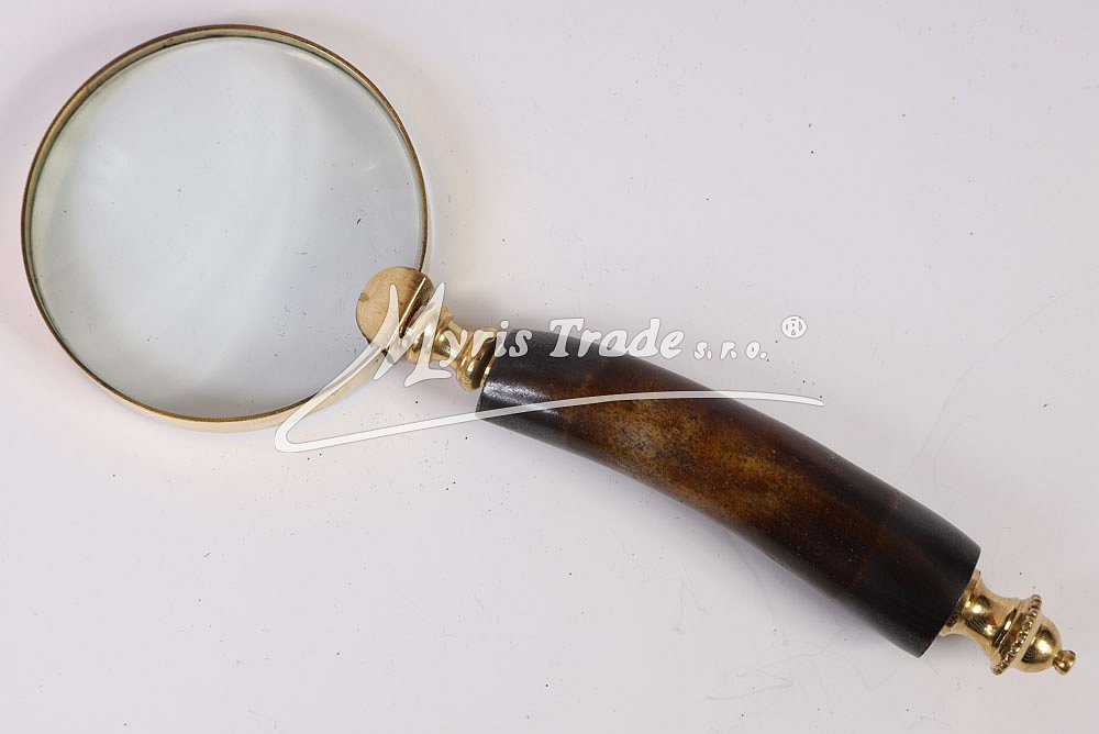 mosazná lupa s rukojetí imitující roh ve starožitném stylu, s vysoce funkční čočkou s maximálním zvětšením
