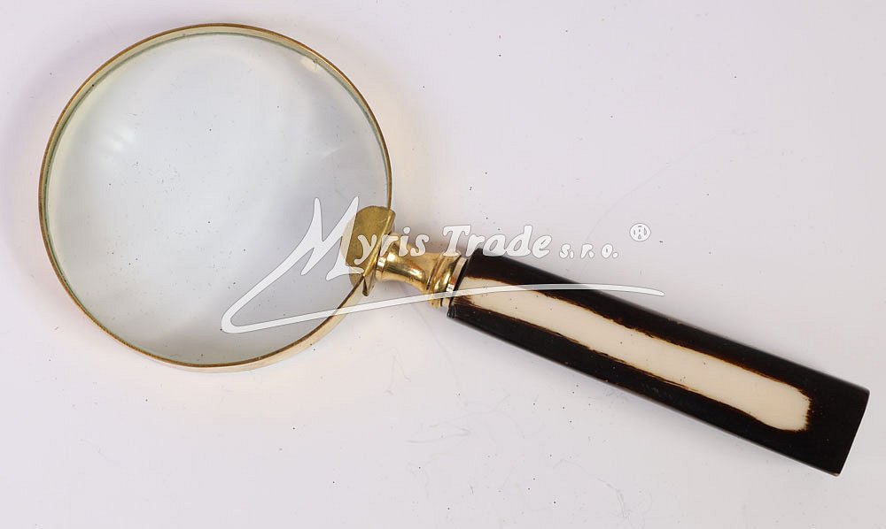 mosazná lupa s hnědo-bílou rukojetí ve starožitném stylu, s vysoce funkční čočkou s maximálním zvětšením