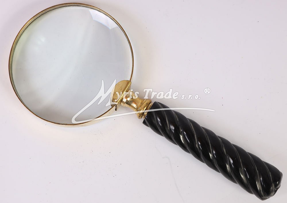 mosazná lupa s černou rukojetí ve starožitném stylu, s vysoce funkční čočkou s maximálním zvětšením