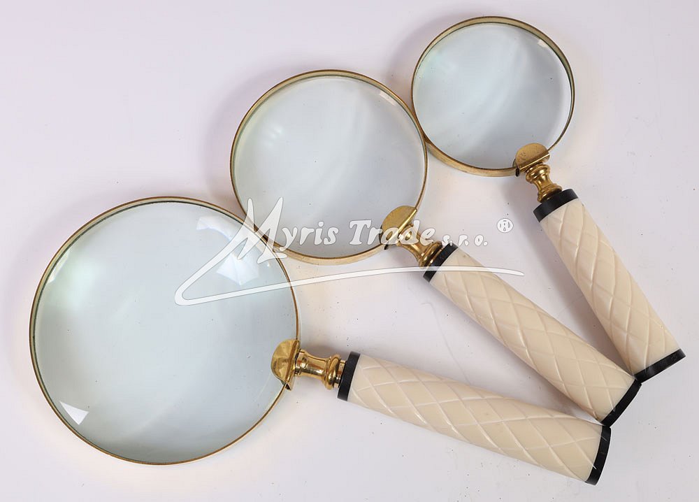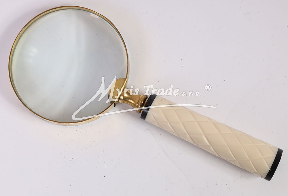 mosazná lupa s bílou rukojetí ve starožitném stylu, s vysoce funkční čočkou s maximálním zvětšením