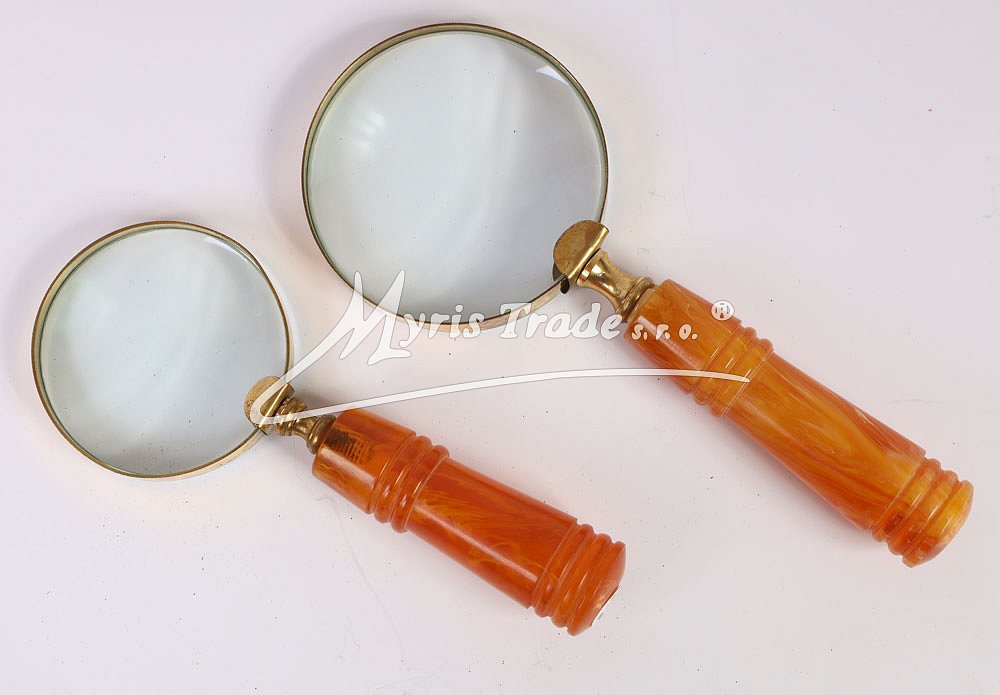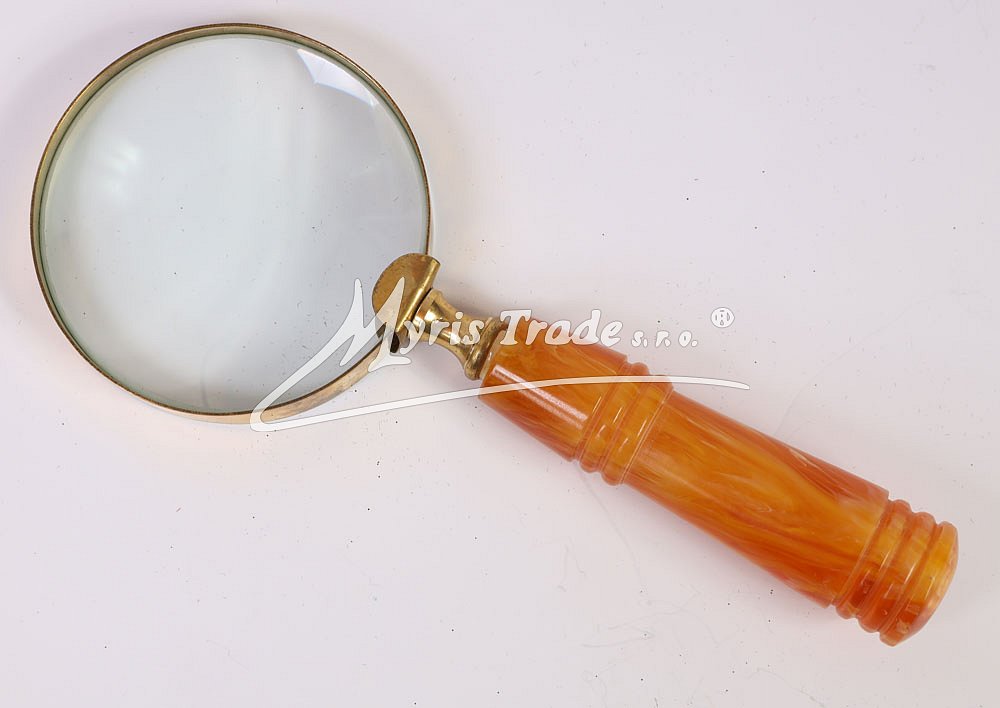 mosazná lupa s oranžovou rukojetí ve starožitném stylu, s vysoce funkční čočkou s maximálním zvětšením