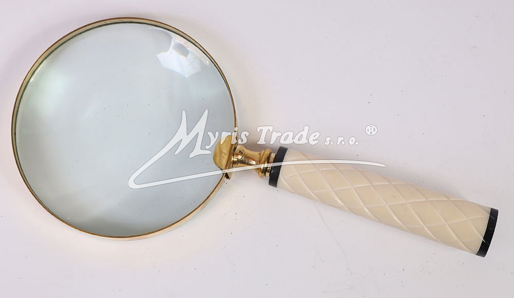 mosazná lupa s bílou rukojetí ve starožitném stylu, s vysoce funkční čočkou s maximálním zvětšením