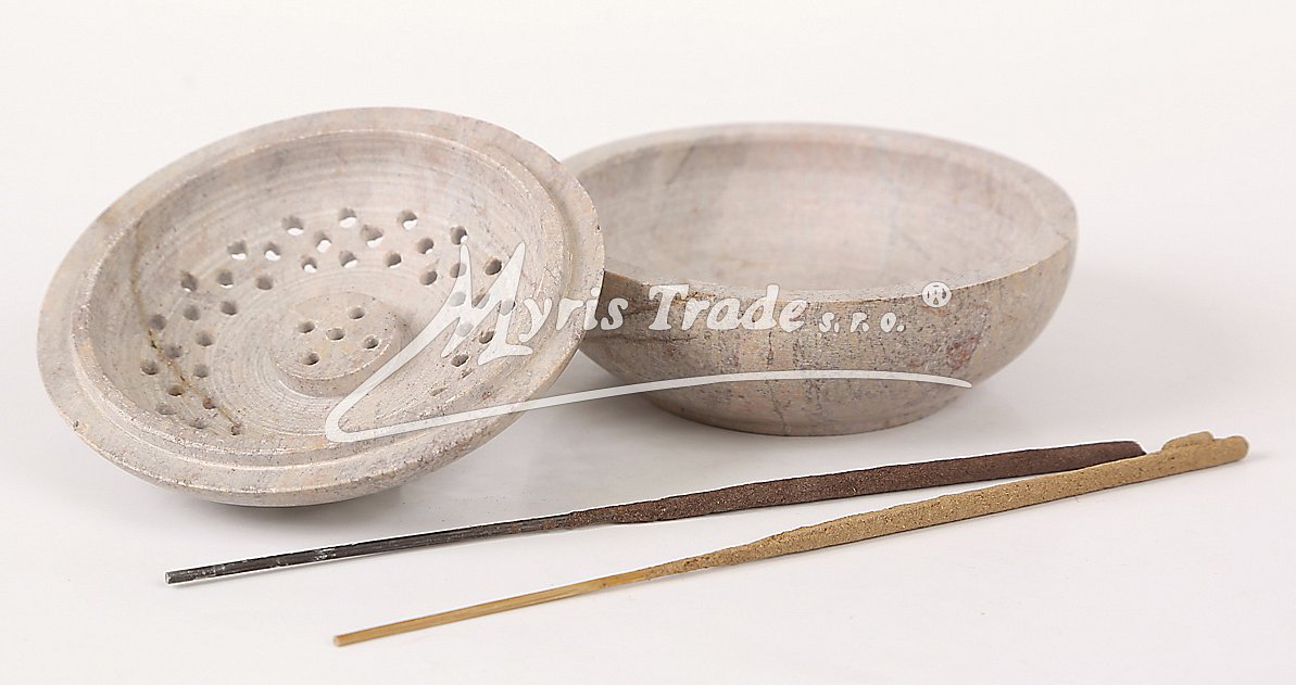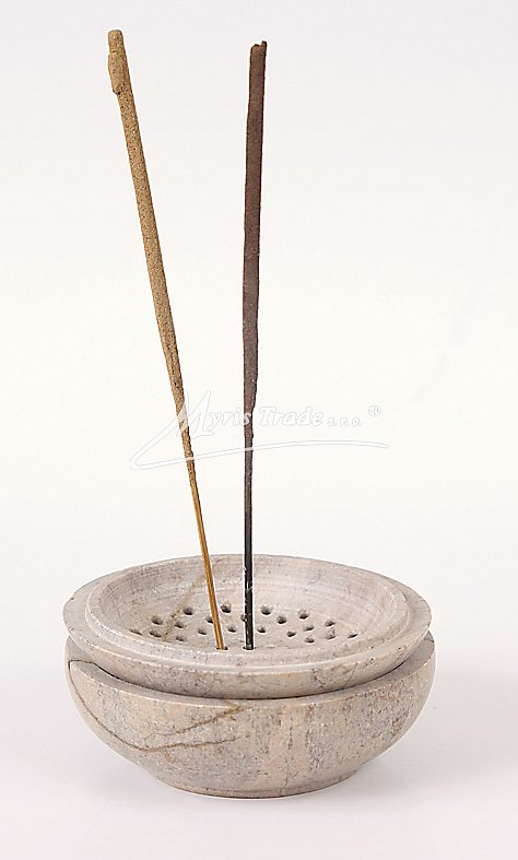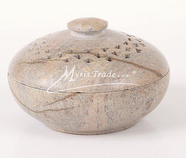 víceúčelovou, dekorativní, vyřezávanou dózičku z kamene (mastku) lze použít nejen jako ozdobnou šperkovničku, ale po obrácení víčka jako stojánek na vonné tyčinky, nebo františky - viz obrázek níže;