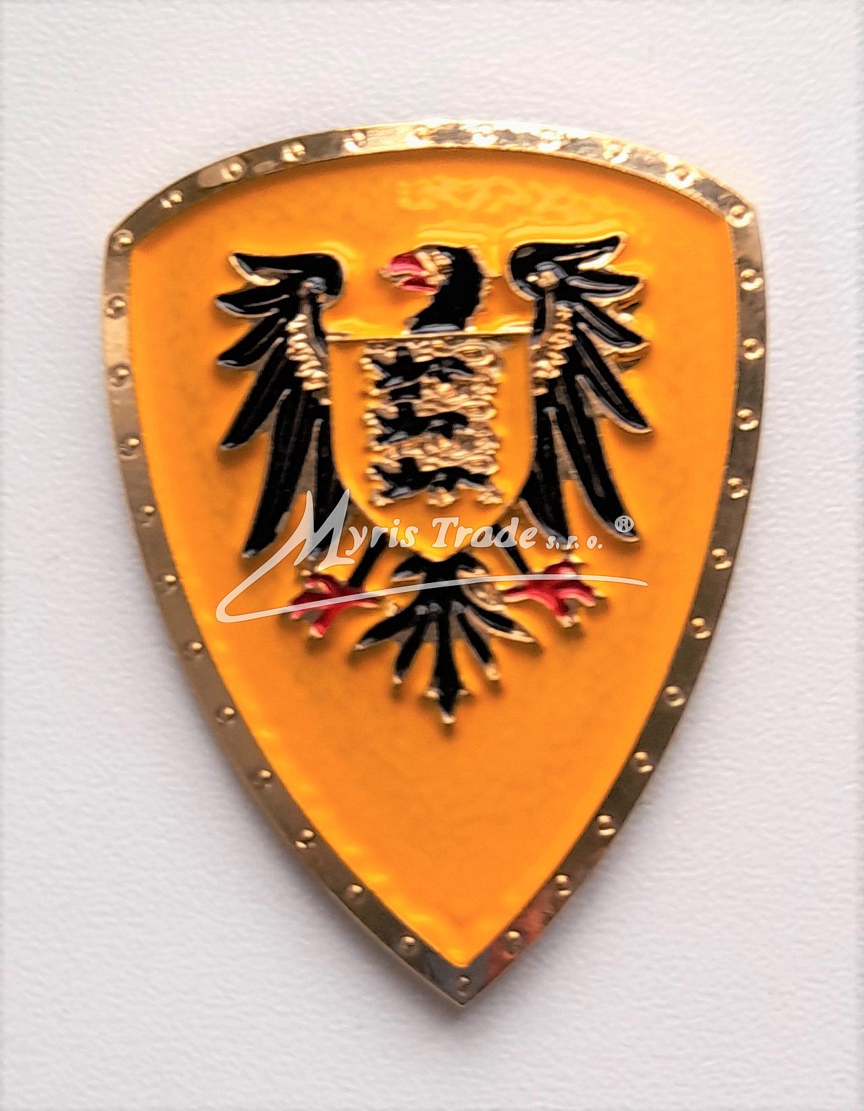 magnet ve tvaru štítu v provedení malovaný kov se znakem "Fridricha Barbarossi"