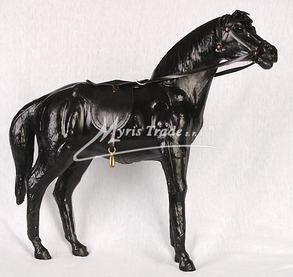 Dárky Myris > Kožená zvířata > Koně z kůže > střední kůň černý se sedlem - 30 cm