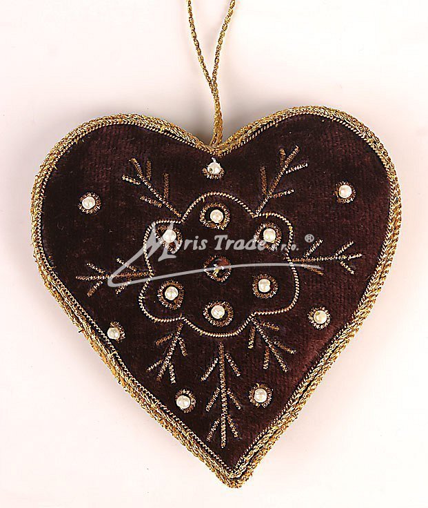 Sametové srdce pošité korálky. Srdce může sloužit jako vánoční ozdoba nebo i jako dekorace mimo vánoční sezónu.