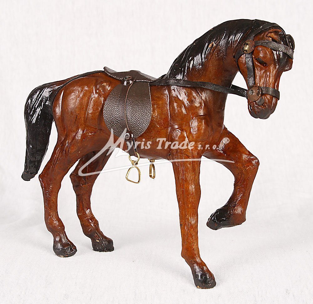 soška koně v koženém provedení a hnědé barvě