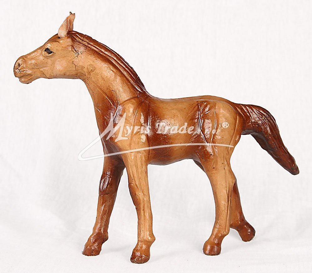 soška koně v koženém provedení a hnědé barvě
