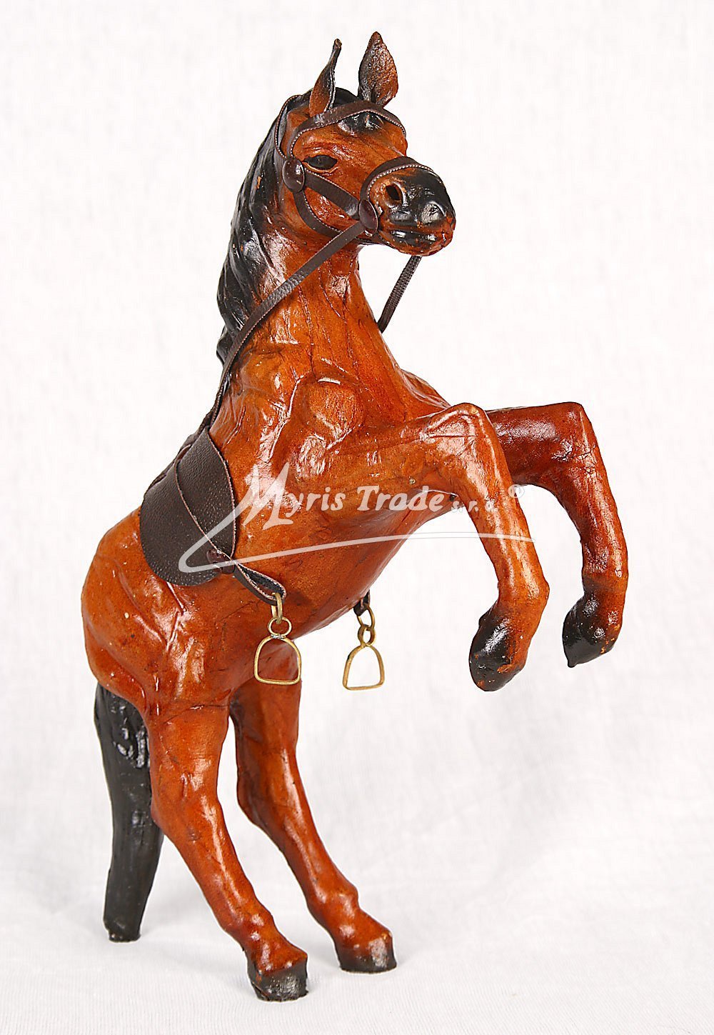 soška vzpínajícího se koně v koženém provedení a hnědé barvě