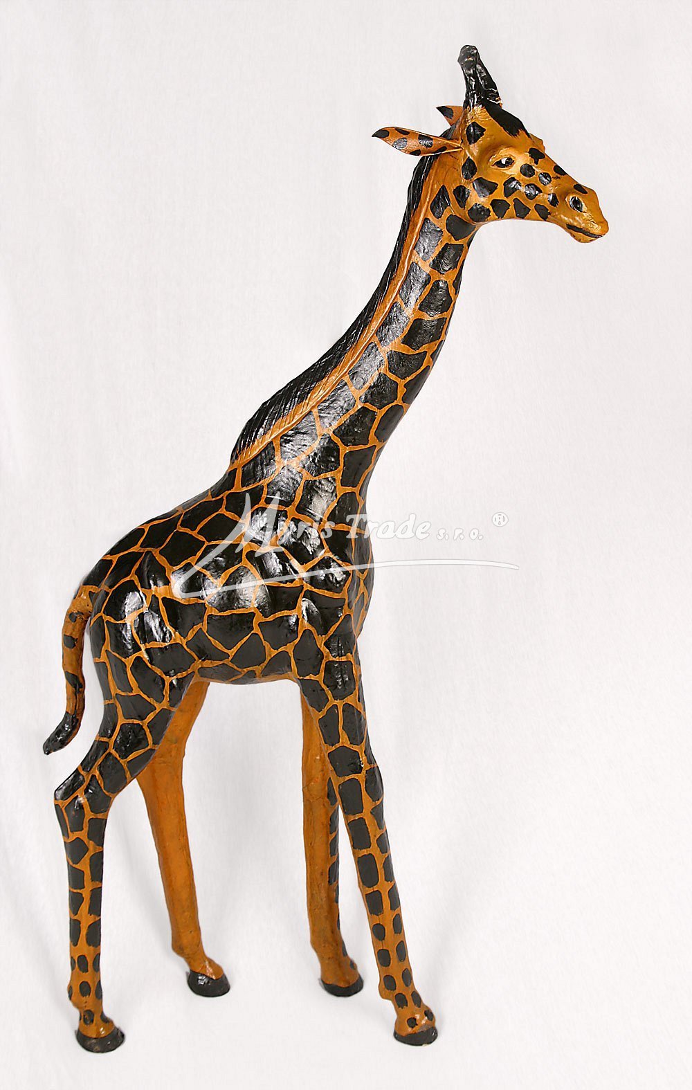 soška žirafy v koženém provedení