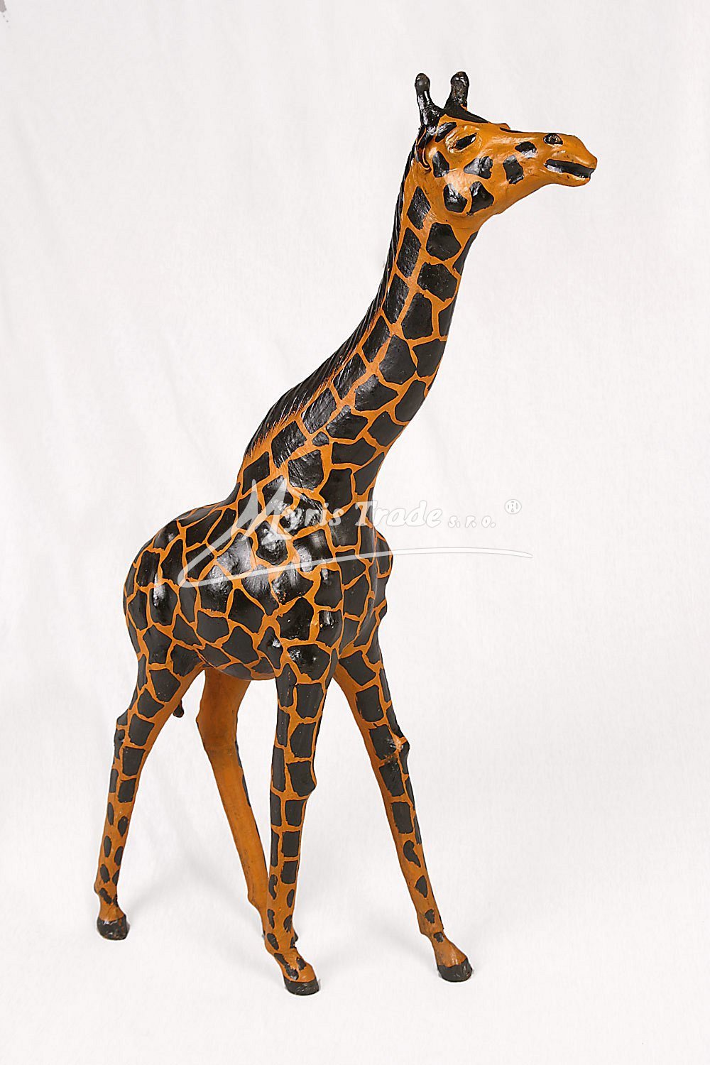 soška žirafy v koženém provedení