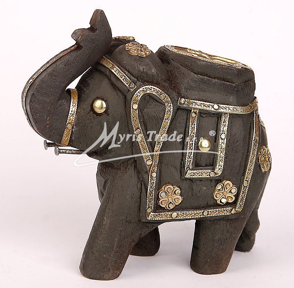slon dřevěný - zdobený mosazí (JDP4/4)