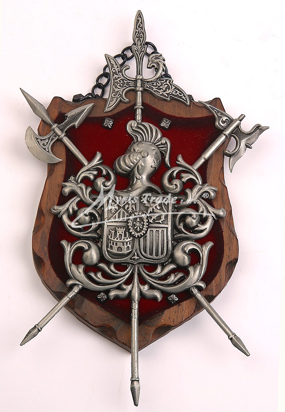 erb na dřevě s červeným sametem - v provedení z šedého kovu