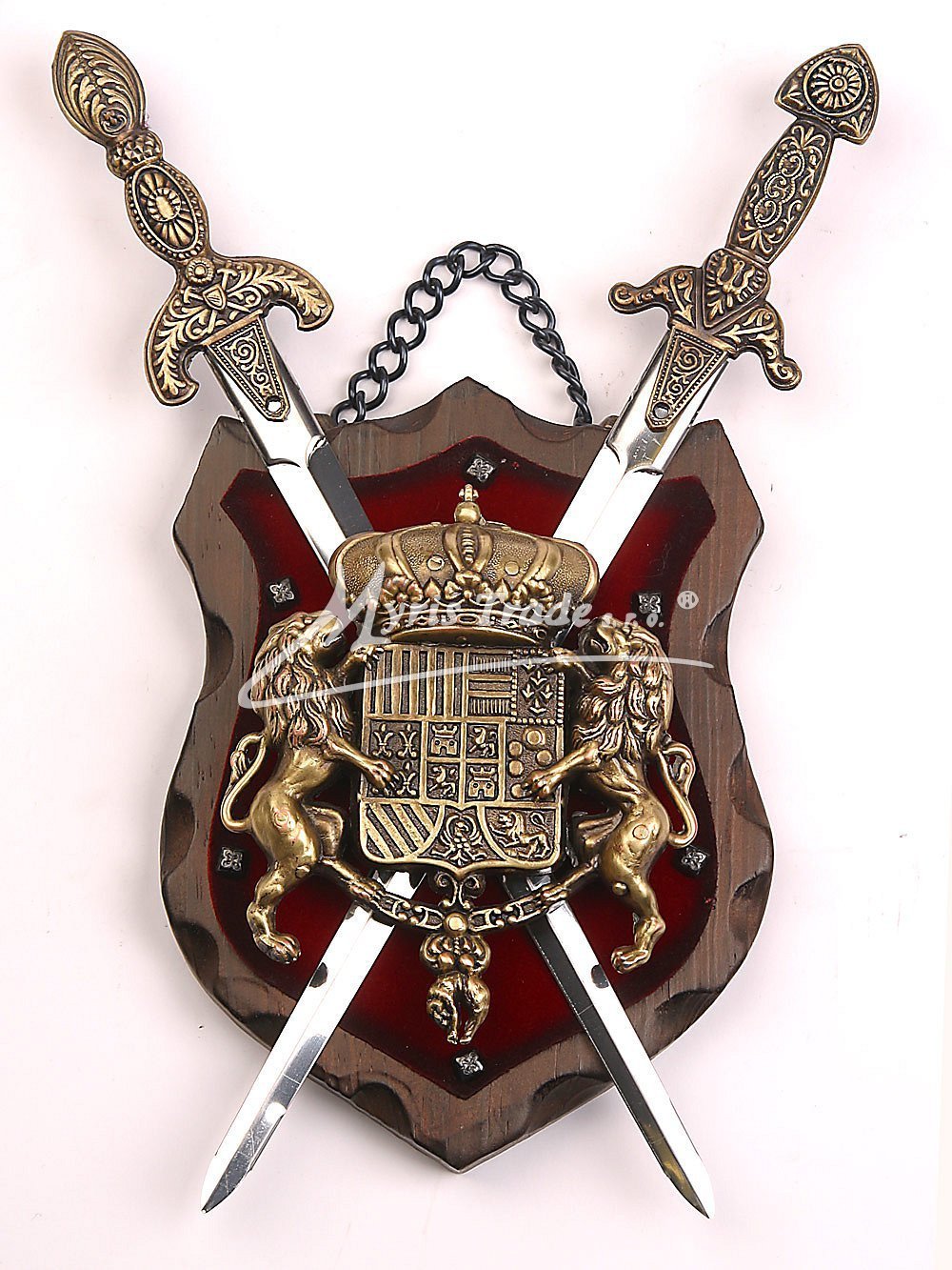 erb na dřevě s červeným sametem- v provedení z kovu barvy bronzu