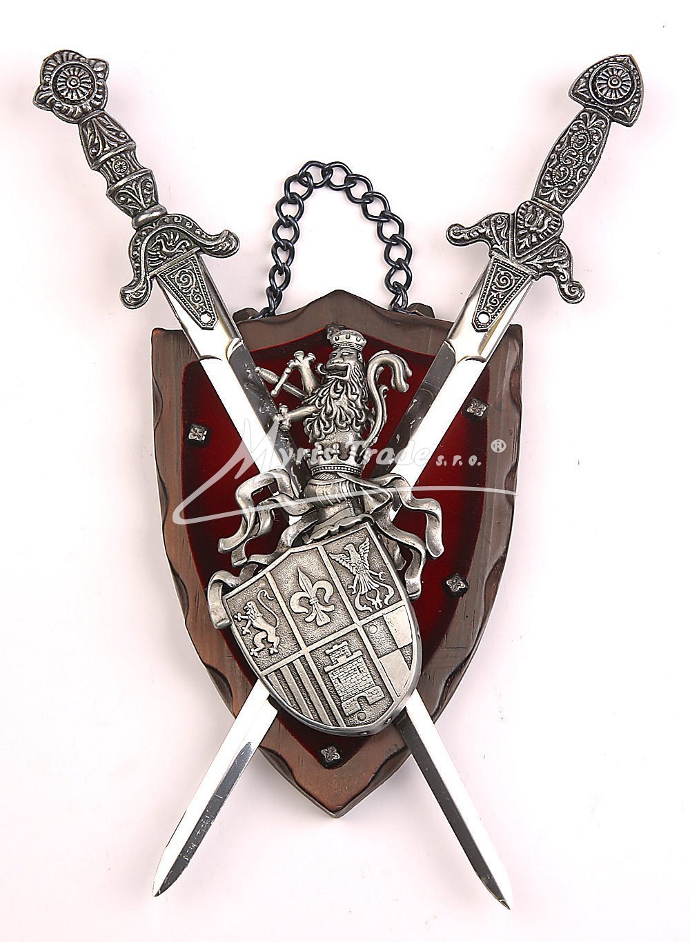 erb na dřevě s červeným sametem - v provedení z šedého kovu