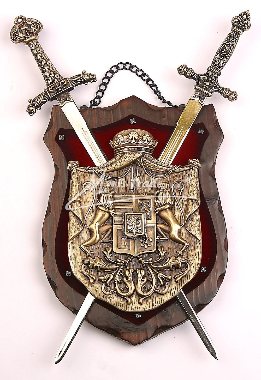 erb na dřevě s červeným sametem - v provedení z kovu barvy bronzu