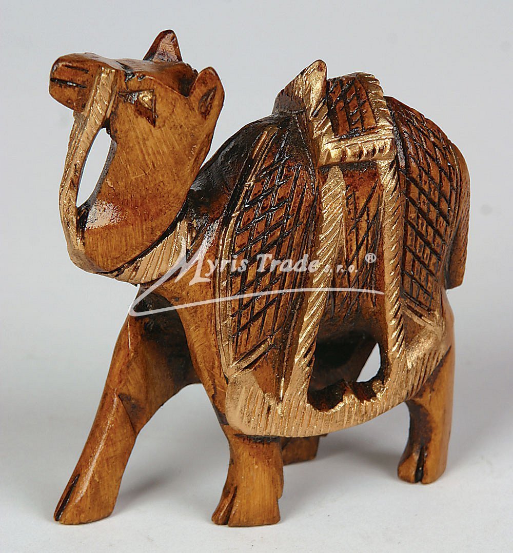 velbloud dřevěný - ručně vyřezávaný, tmavé dřevo, zlacený