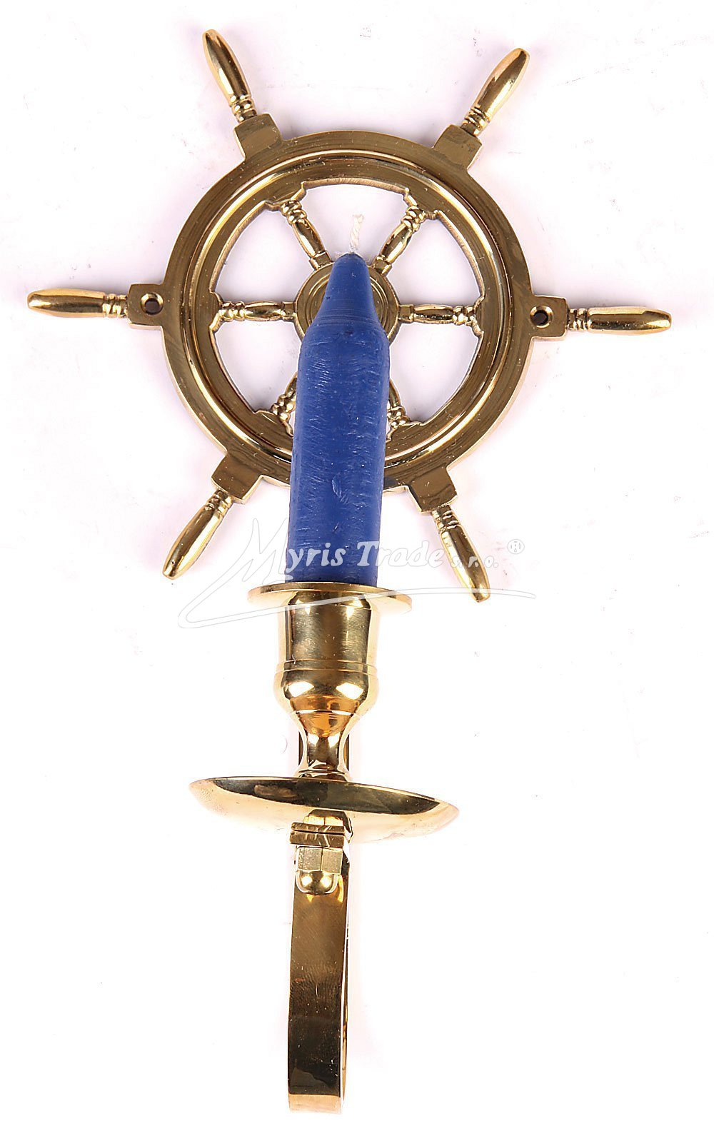 nástěnný svícen z masivní mosazi v podobě lodního kormidla
