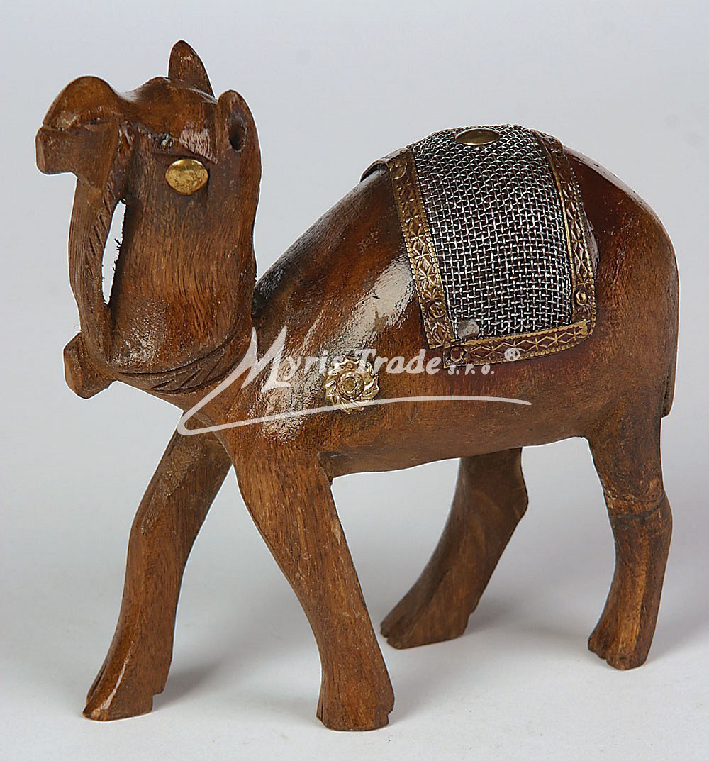 velbloud zdobený - ručně vyřezávaný, tmavé dřevo, zdobený mosazí a kovem