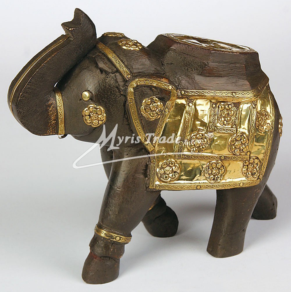 slon dřevěný - zdobený mosazí (JDP4/6)