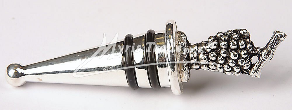 ozdobná zátka ze stříbrného kovu s motivem hroznu