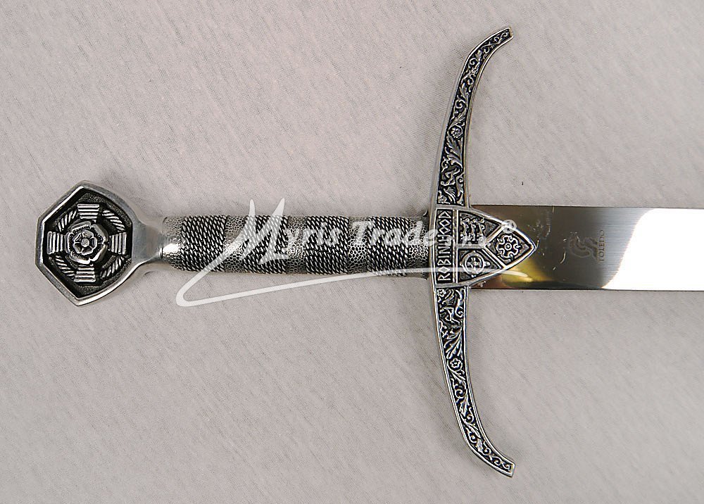replika historického meče legendárního krále zbojníků z Sherwoodu Roberta z Locksley známého jako Robina Hooda, z kvalitní leštěné nerezové oceli původem z Toleda