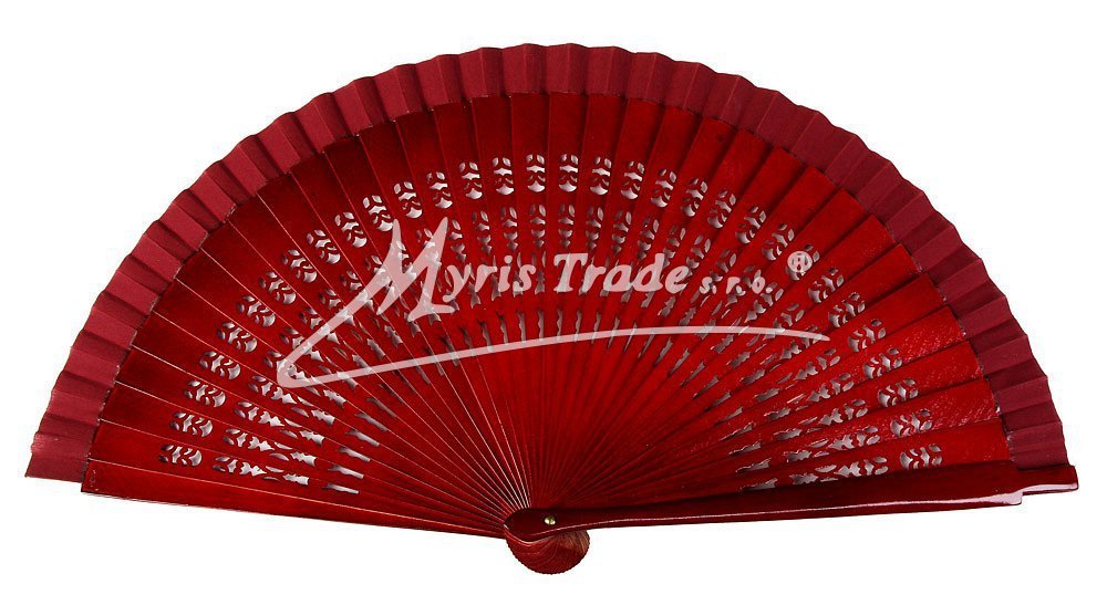 vyřezávaný vějíř - tmavě červený (bordó) (37TC)