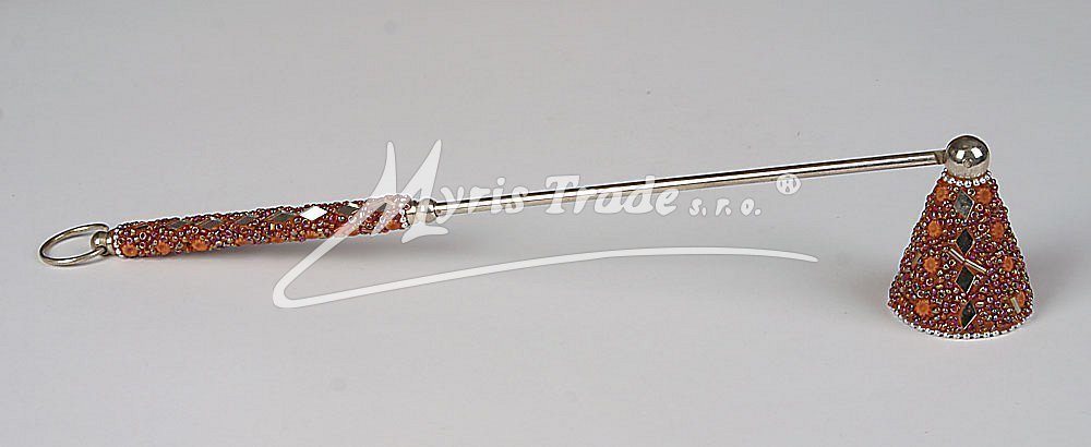 zhasínátko je vyrobeno se stříbrného kovu, hlava zhasínátka a rukojeť jsou zdobené drobnými barevnými korálky a sklíčky délka: 30 cm