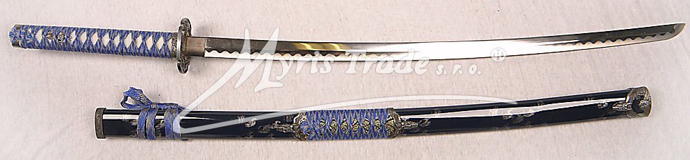 samostatná katana s kovovou pochvou v barvě modré vyrobená z kvalitní oceli dovoz Španělsko