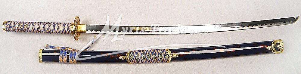 samostatná katana s kovovou pochvou v barvě modrozlaté - lesklé, vyrobená z kvalitní oceli dovoz Španělsko