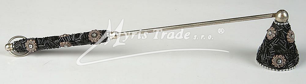 zhasínátko je vyrobeno se stříbrného kovu, hlava zhasínátka a rukojeť jsou zdobené drobnými barevnými korálky a sklíčky délka: 30 cm
