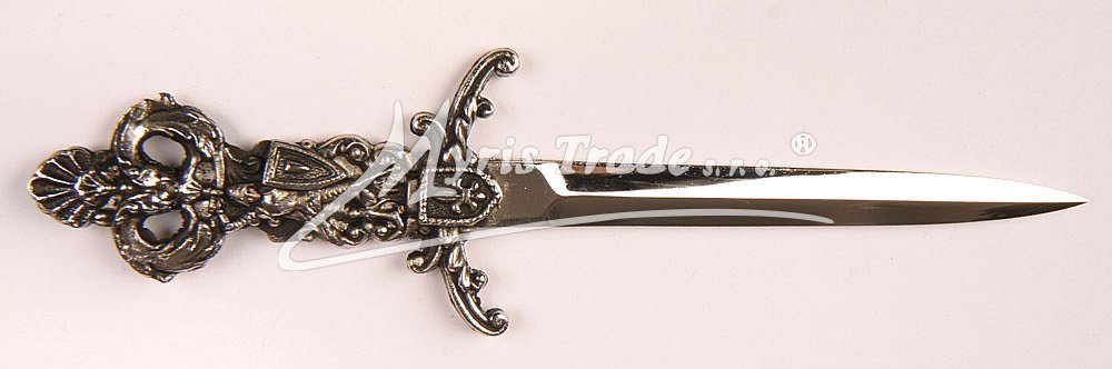 luxusně provedený otvírač na dopisy ve stříbrné barvě