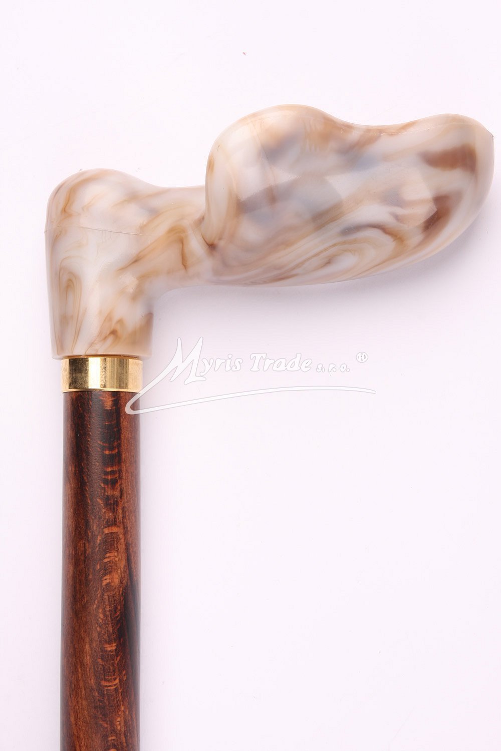 plně funkční vycházková hůl z masivního dřeva a ergonomickou rukojetí, umožňující dokonalé opření ruky