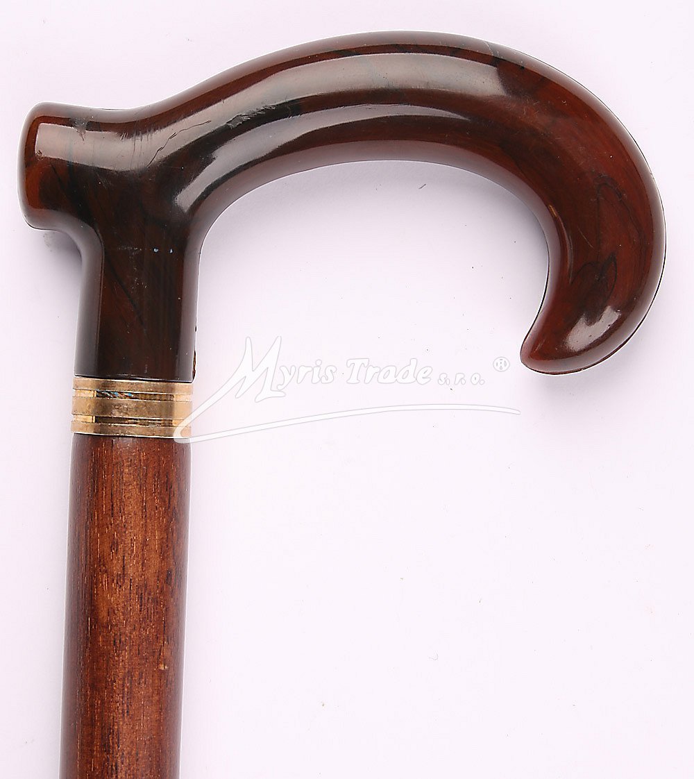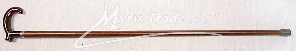 plně funkční vycházková hůl z masivního, tmavě hnědého dřeva s rovnou rukojetí, umožňující pevné opření ruky